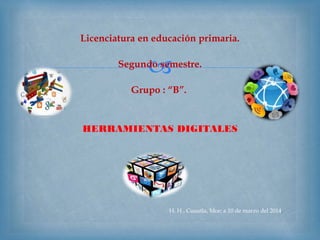 Este documento clasifica y describe las principales herramientas digitales que pueden ser útiles para docentes. Algunas de las herramientas discutidas incluyen CMS como WordPress y Wikis, redes sociales como Facebook y Twitter, editores multimedia como Movie Maker y Photoshop online, y servicios de almacenamiento en la nube como RapidShare y Megaupload. El documento explica que estas herramientas pueden facilitar la comunicación, apoyar la investigación y enriquecer las lecciones en el aula.