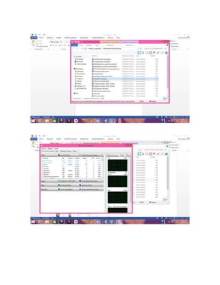Este documento lista herramientas de administración y monitoreo de Windows como Administrador de dispositivos, Diagnóstico de memoria, Monitor de recursos, Monitor de rendimiento, Programador de tareas, Servicios de componentes, Servicios y Visor de eventos.