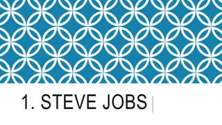 Steve Jobs fue un empresario e informático estadounidense que cofundó Apple Inc. y lideró la revolución de la informática personal. Nació en 1955 y abandonó la universidad para cofundar Apple con su socio Stephen Wozniak en 1976. Bajo el liderazgo de Jobs, Apple lanzó innovadores productos como el Macintosh, el iPod, el iPhone y el iPad que revolucionaron varias industrias y popularizaron la informática y la música digital.