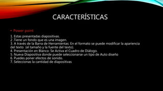 El documento describe las características y usos de tres herramientas de presentación: PowerPoint, Prezi y SlideShare. Se destacan sus ventajas y desventajas, como la posibilidad de integrar multimedia en Prezi y la facilidad de compartir presentaciones en SlideShare. Se concluye que, aunque cada herramienta ofrece diferentes formas de presentación, su efectividad depende del contexto en el que se utilicen.