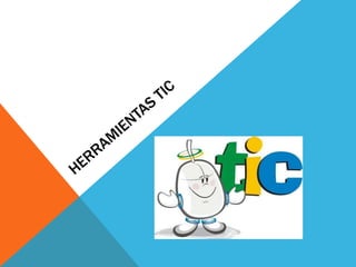 Las TIC (tecnologías de la información y comunicación) incluyen redes, terminales y servicios digitales que se utilizan ampliamente en la sociedad actual. Las TIC se han integrado en sectores como la educación, la salud y el gobierno. Existen cursos y maestrías en TIC para desarrollar conocimientos sobre este campo. Las TIC permiten el acceso rápido e interactivo a la información de forma inmaterial desde cualquier lugar y automatizan tareas. Algunos ejemplos de TIC son las redes de telefonía, internet y