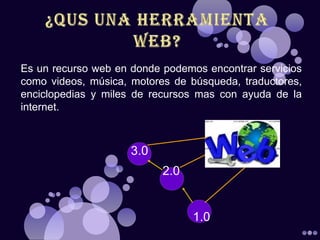 Este documento describe la evolución de Internet y la web a través de tres generaciones. Explica que la Web 1.0 consistía principalmente en páginas estáticas y de solo lectura, mientras que la Web 2.0 permitió una mayor interacción y colaboración entre usuarios a través de blogs, redes sociales y otras aplicaciones. Finalmente, introduce la Web 3.0 como una red semántica más inteligente que interconectará y analizará grandes cantidades de datos.