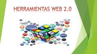El documento describe la evolución de la Web 2.0 y las herramientas colaborativas que permiten a los usuarios crear y compartir contenido en línea de manera más fácil. Explica que la Web 2.0 se refiere a sitios web que permiten la participación y colaboración de los usuarios a través de blogs, redes sociales, wikis, mapas conceptuales y otras herramientas. También menciona algunas de las herramientas más populares como Google Drive, Dropbox, Facebook, Twitter y Mindmeister que facilitan el trabajo colabor