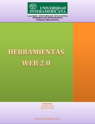 Este documento proporciona una introducción a las herramientas de Web 2.0 y sus características. Explica que la Web 2.0 permite a los usuarios publicar, compartir y colaborar en contenido de manera interactiva. Luego describe varias herramientas populares de Web 2.0 como WordPress, Pligg, Chyrp y sus funcionalidades para publicación de contenido, blogging, edición colaborativa y más. Finalmente, discute cómo la Web 2.0 puede usarse como una plataforma de aprendizaje que permite a los