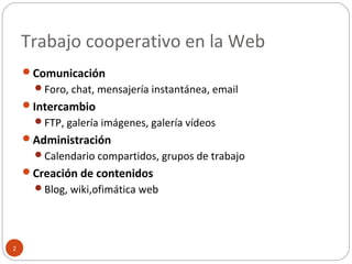 Este documento proporciona una introducción a los wikis. Define wikis y explica sus características principales como la edición abierta, el formato de texto sencillo y el almacenamiento de versiones anteriores. Usa Wikipedia como ejemplo paradigmático de wiki y menciona otras wikis populares como Wikilengua y Wikcionario. Explica brevemente cómo participar en una wiki y las herramientas disponibles para crear una propia wiki.