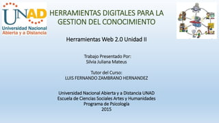 Este documento resume varias herramientas digitales para la gestión del conocimiento como Prezi, SlideShare, Dipity y Tiki-Toki Timelines. Prezi permite presentar texto, imágenes y figuras en capas y con tamaños y rotaciones variables. SlideShare permite compartir presentaciones de PowerPoint. Dipity permite crear líneas de tiempo interactivas. Y Tiki-Toki permite crear líneas de tiempo atractivas visualmente que se pueden compartir en línea.