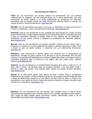 Flickr: Es una herramienta que permite realizar una presentación con una cantidad