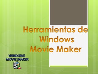 Windows Movie Maker es un software de edición de video gratuito que permite capturar, importar y editar video y audio para crear películas caseras. Ofrece herramientas para agregar transiciones, efectos, títulos y una banda sonora. Una vez finalizada, la película se puede exportar y compartir en línea o mediante correo electrónico.