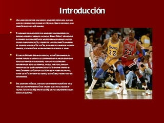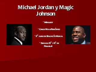 Este documento presenta una tarea escolar sobre los jugadores de baloncesto Magic Johnson y Michael Jordan. Los estudiantes deben investigar las características de sus estilos de juego, comparar el baloncesto moderno con el de ellos, y comentar videos de los jugadores en grupos. La tarea se evaluará considerando la actitud, organización del trabajo individual y creatividad en el trabajo grupal.
