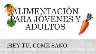 La mala alimentación en los adolescentes causa muchas enfermedades. Es importante crear conciencia sobre una dieta balanceada y no dejarse influenciar por la publicidad o cultura de la imagen. Se propone elaborar un producto saludable a base de zanahoria y naranja, rico en nutrientes pero bajo en grasa. El producto se venderá en paquetes de 5 galletas a $1 cada paquete, con una producción inicial de 3000 unidades al mes.