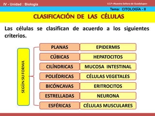 El documento clasifica las células según su forma, tamaño, evolución y nutrición. Describe las bacterias como células procariotas sin núcleo verdadero que se encuentran en diversos hábitats y son importantes en ciclos biogeoquímicos, aunque algunas son patógenas.