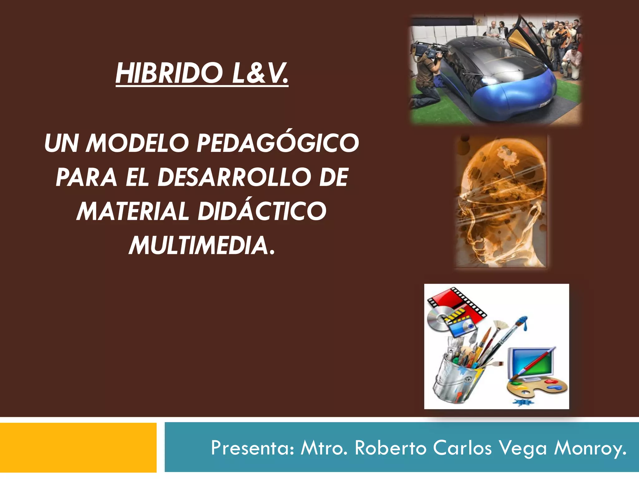 Este documento presenta un modelo pedagógico híbrido (L&V) para el desarrollo de material didáctico multimedia. El modelo propone la integración de enfoques mecánicos, teóricos y metodológicos, así como la creación y evaluación crítica de materiales didácticos multimedia a través de la innovación, la interacción y el seguimiento continuo.