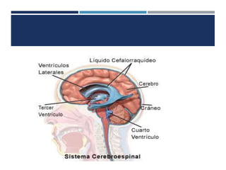 La hidrocefalia es una acumulación anormal de líquido cefalorraquídeo en los ventrículos del cerebro que puede causar daño cerebral. Puede ser congénita u obtenerse después del nacimiento. Los síntomas incluyen un aumento del tamaño de la cabeza, vómitos, convulsiones y retraso en el desarrollo. El diagnóstico se realiza mediante tomografía computarizada, resonancia magnética o punción lumbar. El tratamiento puede incluir cirugía para colocar un derivador ventricular o fis