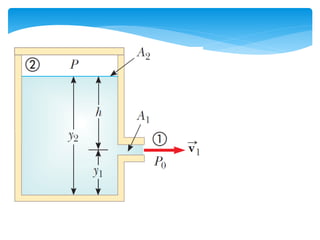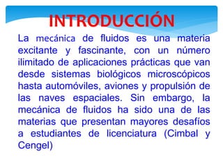 Este documento presenta conceptos básicos de hidrodinámica. Introduce la mecánica de fluidos y define un fluido como una sustancia que puede cambiar fácilmente de forma. Explica los estados de la materia sólido, líquido y gaseoso. Luego define densidad y proporciona ejemplos. Finalmente, introduce conceptos clave como caudal, ecuación de continuidad y ecuación de Bernoulli para analizar el flujo de fluidos.