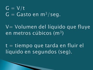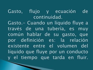 3) La ecuación de Bernoulli relaciona estas energías y se usa para resolver problemas de flujo de líquidos en tuberías y canales.