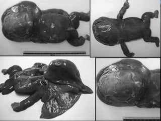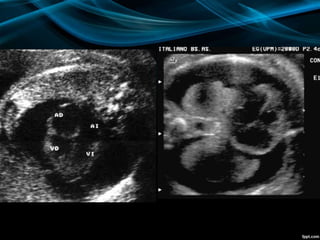 Este documento describe la hidrops fetal, una condición patológica en la que el feto o recién nacido presenta edema generalizado. Se define como la presencia de líquido en dos o más cavidades y puede deberse a causas inmunológicas, cardíacas, pulmonares, renales u otras. El documento detalla las características ecográficas, evaluación prenatal, pronóstico, manejo y casos clínicos de hidrops fetal.
