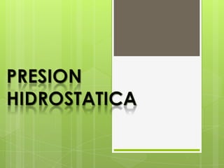 El documento trata sobre los principios básicos de la hidrostática. Explica que la hidrostática estudia los líquidos en reposo y sus propiedades como la viscosidad, tensión superficial, cohesión y adherencia. También describe el principio de Pascal descubierto por Blaise Pascal, el cual establece que la presión se transmite en igual intensidad en todas direcciones dentro de un líquido contenido en un recipiente. Finalmente, explica cómo este principio es la base de la prensa hidráulica, la cual permite obtener fuerzas mayores aplicando fuer