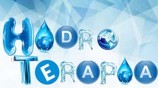 Este documento trata sobre la hidroterapia, definida como el uso terapéutico del agua de forma térmica, mecánica o química. Explica que la hidroterapia mejora la circulación, estimula el sistema inmunitario, alivia los músculos y reduce el estrés. Además, detalla los tipos de hidroterapia mecánica, térmica y química, e indica que se aplica para analgesia, antiinflamación, vasodilatación y otros fines. Finalmente, señala algunas
