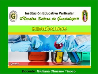 Este documento trata sobre los hidróxidos metálicos. Explica que los hidróxidos se obtienen a partir de la reacción de un óxido metálico con agua, y que su fórmula general es Mx(OH)n, donde M es el metal y OH es el grupo funcional oxidrilo. También describe cómo se nombran los hidróxidos según la nomenclatura stock y IUPAC, e incluye ejemplos de diferentes hidróxidos.