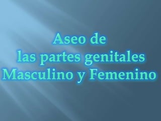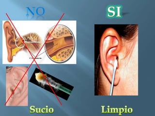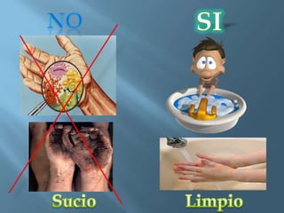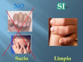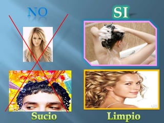 El documento describe los pasos básicos para mantener una buena higiene corporal. Explica que es importante lavar diariamente la piel, cabello, dientes, orejas, ojos, nariz, manos, pies, uñas y genitales para eliminar bacterias y mantener un buen estado de salud e higiene.