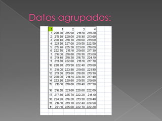 Un fabricante de embutidos realizó un estudio sobre la distribución de peso de sus productos durante 20 días, tomando muestras aleatorias de 4 unidades de cada una de sus 2 máquinas de llenado automático, debido a problemas previos de peso y una próxima inspección oficial.