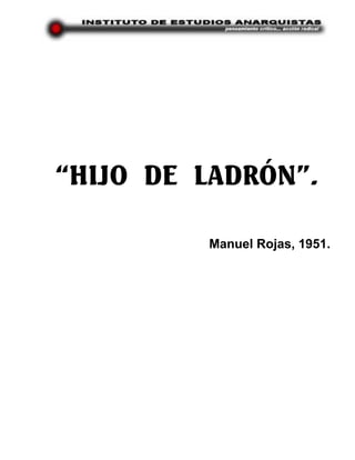 Este documento es el índice y la primera parte de la novela "Hijo de ladrón" de Manuel Rojas. Narra la historia de un hombre sin papeles que intenta embarcar desde Valparaíso, pero se enfrenta a la burocracia que le pide certificados que no posee. Relata también cómo entró de forma ilegal a Chile escondido en un vagón con animales.