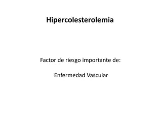 La hipercolesterolemia es un importante factor de riesgo de enfermedades vasculares como las cardiacas, cerebrales y de las extremidades inferiores. Aunque una parte de la población española tiene niveles normales de colesterol, otra parte sufre de hipercolesterolemia sin saberlo. La hipercolesterolemia puede deberse a causas como una dieta rica en grasas saturadas, sobrepeso, falta de ejercicio, ciertas enfermedades o fármacos, y factores hereditarios.