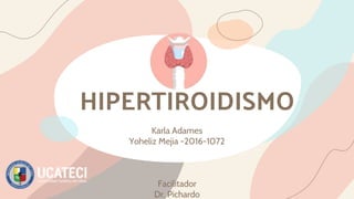 Este documento trata sobre el hipertiroidismo, una afección que ocurre cuando la glándula tiroides produce demasiadas hormonas. Explica que puede ser primario, secundario o terciario y ser causado por la enfermedad de Graves, un bocio multinodular tóxico, un nódulo tiroideo hiperactivo o la tiroiditis. Describe los síntomas como aumento de la frecuencia cardíaca, sudoración, temblor e insomnio. El diagnóstico incluye pruebas de función tiroidea y gam
