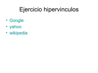 Este documento lista algunos hipervínculos a sitios web populares como Google, Yahoo y Wikipedia.