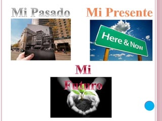 Este documento describe el pasado, presente y futuro de una persona. Nació en Monterrey en 1997 y se mudó a Ciudad Mante a los 3 años, donde asistió a la primaria y secundaria. Actualmente tiene 17 años y asiste a la Preparatoria Mante, donde ha hecho amigos. Su plan para el futuro es estudiar Ingeniería en Sistemas Computacionales en la UAMM para permanecer cerca de su familia.
