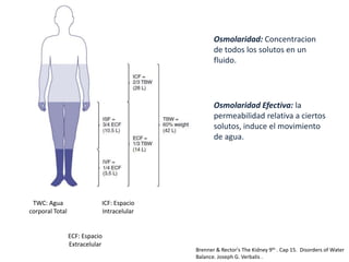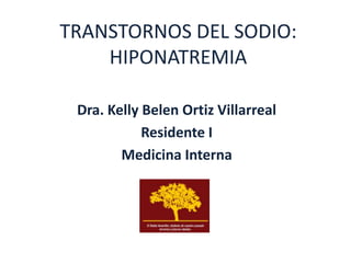 El documento aborda la hiponatremia, un trastorno hidroelectrolítico caracterizado por niveles de sodio inferiores a 130 meq/l, que puede aumentar significativamente la mortalidad si se presenta de forma aguda. Se describen diferentes tipos de hiponatremia (isotónica, hipertonica, dilucional) y su relación con diversas condiciones clínicas. Además, se incluyen directrices de tratamiento y manejo de la hiponatremia basadas en recomendaciones de expertos.
