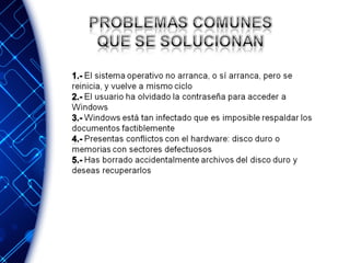 Hiren's Boot CD es una herramienta que contiene múltiples utilidades para diagnosticar y reparar problemas en Windows. Ofrece opciones como iniciar desde el disco duro, cargar un menú con herramientas de nivel MSDOS, iniciar una versión mínima de Windows XP en memoria RAM, editar contraseñas de Windows, iniciar Windows sin contraseña, borrar datos de discos duros de forma irreversible, diagnosticar la memoria RAM, y más opciones de arranque avanzadas.