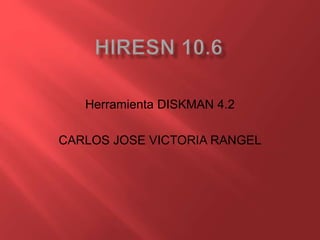 Diskman es una herramienta avanzada para manipular discos diseñada para ofrecer una solución completa para copiar, clonar, hacer copias de seguridad o destruir discos y particiones de forma rápida. La herramienta guía al usuario a través de varios pasos para leer un CD, navegar menús en español, y acceder a comandos de BIOS para reparar problemas de video al encender la computadora.