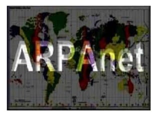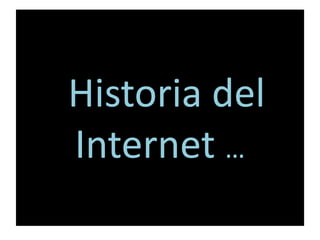 El documento describe la historia del Internet, incluyendo que fue creado por Estados Unidos en 1969 como una red militar llamada ARPANET que conectaba 4 universidades, y desde entonces ha crecido para incluir uso comercial y sitios populares como Facebook, YouTube y Twitter.