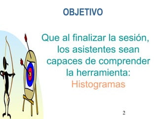 Este documento explica qué son los histogramas y cómo se usan. Los histogramas son gráficos que resumen conjuntos de datos agrupándolos en intervalos para mostrar la distribución de valores. Muestran patrones y comportamientos que son difíciles de ver en tablas numéricas. Se usan para analizar grandes cantidades de datos y revelar la variabilidad de procesos.