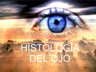 El documento describe la histología del ojo humano. Se divide en tres capas principales: la capa esclerocorneal, la capa media o uvea, y la capa interna o retina. La capa esclerocorneal protege las estructuras internas del ojo y contiene la córnea y esclerótica. La capa media proporciona nutrición y producción de humor acuoso e incluye el iris, cuerpo ciliar y coroides. La capa interna es la retina, que contiene los fotorreceptores y redes nerviosas para la