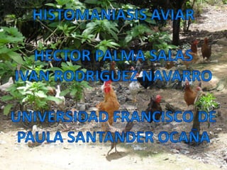 Esta enfermedad afecta principalmente a pollos y pavos. Es causada por el protozoo Histomonas meleagridis, el cual infecta específicamente el ciego y el hígado de las aves. Los pavos se infectan al ingerir huevos del nematodo Heterakis gallinarum, que contienen al parásito Histomonas. Esto causa síntomas como diarrea, cabeza negra y lesiones en el hígado. El control incluye desparasitación y cuarentena de aves infectadas para prevenir la propagación.