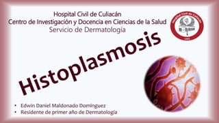 La histoplasmosis es una infección granulomatosa causada por el hongo dimórfico Histoplasma capsulatum, predominante en individuos inmunocomprometidos, con presentación clínica más frecuente en forma pulmonar y manifestaciones cutáneas en el 10-25% de los casos diseminados. Se distribuye mundialmente, con mayor prevalencia en América Latina y en los Estados Unidos, especialmente en áreas con humus y excrementos de aves. Las manifestaciones cutáneas incluyen pápulas, nódulos, úlceras y otras lesiones, siendo común en pacientes con VIH y otras condiciones de inmunosupresión.