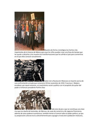 La Revolución Mexicana comenzó el 20 de noviembre de 1910 cuando Francisco I. Madero encabezó un movimiento para derrocar al presidente Porfirio Díaz, quien había gobernado México de manera autoritaria desde que asumió el poder tras una victoria militar. Este periodo de gobierno porfiriano dio lugar a una clase rica y poderosa que controlaba la economía y la política del país, marginando al resto de la población. La Revolución Mexicana buscó poner fin a esta desigualdad social