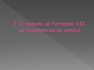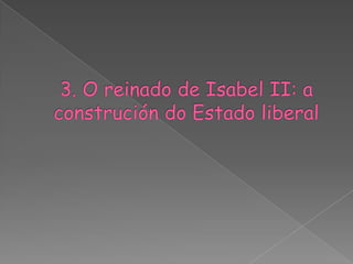 Este documento resume los principales acontecimientos políticos, sociales y económicos de España desde la guerra de independencia contra Napoleón hasta finales del siglo XIX. Incluye la constitución de 1812, el trienio liberal, las guerras carlistas, la restauración borbónica y el desarrollo de los partidos políticos y movimientos obreros en esta época. También describe la transición hacia una economía más industrializada y liberalizada, así como los problemas sociales que esto generó.