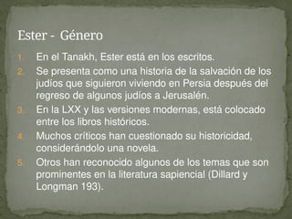 1. El librode Ester no menciona a Dios, ni la oración ni la