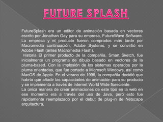 FutureSplash era un editor de animación basado en vectores desarrollado originalmente por Jonathan Gay en 1995.