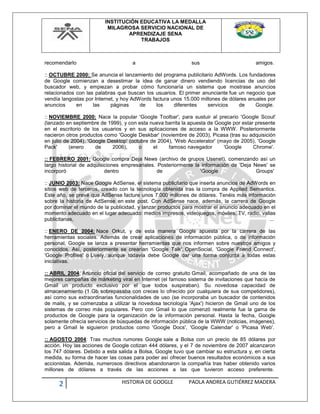 Google fue fundada en 1998 por Larry Page y Sergey Brin. Comenzó como un buscador web operando desde un garaje con un solo empleado. Desde entonces, Google ha crecido exponencialmente y ofrece una amplia gama de productos y servicios, incluidos Gmail, Google Maps, YouTube y Android. La compañía también ha realizado numerosas adquisiciones que han ampliado sus capacidades en áreas como publicidad, software y datos geoespaciales.