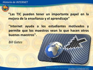 Internet comenzó a desarrollarse en la década de 1960 impulsado por proyectos del gobierno de Estados Unidos, y se popularizó en la década de 1990 con la creación de la World Wide Web. En esencia, Internet es un conjunto descentralizado de redes de comunicación que interconecta computadoras y equipos a nivel mundial mediante protocolos como TCP/IP.