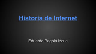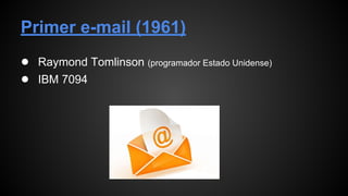 Este documento resume brevemente la historia de Internet, comenzando con el primer correo electrónico en 1961 y la invención del protocolo TCP/IP en 1974, el cual especifica cómo deben ser los datos transmitidos a través de Internet. Luego describe la creación de la World Wide Web en 1991 por Tim Berners Lee, así como el surgimiento de importantes sitios web como Amazon en 1994, Google en 1998, Facebook en 2004 y Twitter en 2006. Finalmente, menciona el lanzamiento del primer iPhone en 2007.