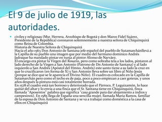Este documento resume la historia de la devoción a Nuestra Señora del Rosario. Comenzó cuando la Virgen se le apareció a Santo Domingo de Guzmán y le enseñó el rosario como una forma de oración. A lo largo de los siglos, varios Papas han promovido esta devoción, incluyendo a León XIII quien escribió encíclicas sobre el rosario y lo declaró Reina del Rosario. También se atribuyen varias victorias militares a la intercesión de la Virgen del Rosario, lo que ha