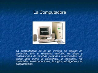 La computadora ha evolucionado a lo largo de cinco generaciones desde sus orígenes mecánicos hasta convertirse en dispositivos electrónicos miniaturizados. La primera generación utilizó válvulas electrónicas. La segunda introdujo transistores. La tercera utilizó circuitos integrados. La cuarta generación introdujo los microprocesadores. Y la quinta generación se enfoca en la inteligencia artificial y el procesamiento en paralelo.