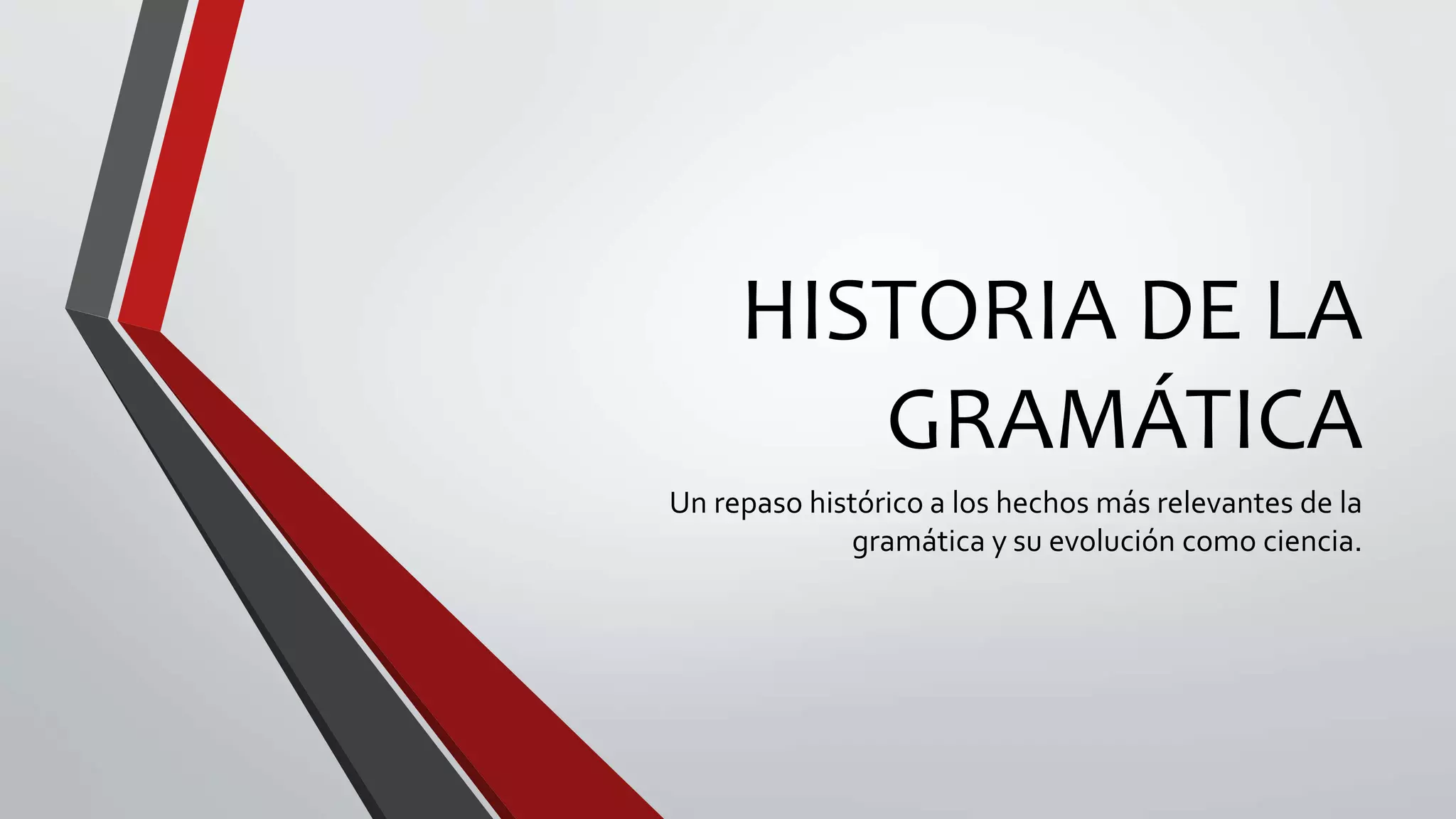 Este documento resume la historia de la gramática desde la antigua Grecia hasta la actualidad. Comenzó con los griegos que estudiaron la estructura del lenguaje desde una perspectiva filosófica. Los romanos luego tradujeron los términos gramaticales griegos y muchos se mantienen hoy. La primera gramática escrita fue la gramática sánscrita de Panini en la India. Más tarde, gramáticos árabes, judíos y Dionisio de Tracia desarrollaron estudios gramaticales. En los siglos posteriores, los