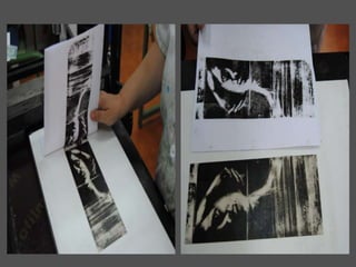 El documento describe la historia de varios procesos de impresión como la litografía, la impresión offset y la linotipia. Específicamente, detalla que la litografía fue inventada por Aloys Senefelder en 1798 y que la impresión offset fue desarrollada a principios del siglo XX como una variante indirecta de la litografía que implicaba el uso de caucho. También explica que la linotipia fue una máquina de composición inventada en 1884 que automatizó el proceso de componer textos con plomo fundido.