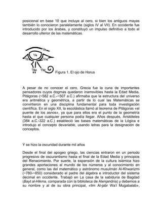 La informática ha evolucionado paralelamente a descubrimientos en álgebras, cálculo, lógica y otras disciplinas. Civilizaciones antiguas como los egipcios, sumerios e hindúes desarrollaron sistemas de numeración. En el siglo XIX, inventores como Babbage, Ada Lovelace y Hollerith sentaron las bases para la computación moderna al desarrollar máquinas analíticas programables y el uso de tarjetas perforadas para almacenar datos. Estos avances condujeron al desarrollo de las primeras calculadoras